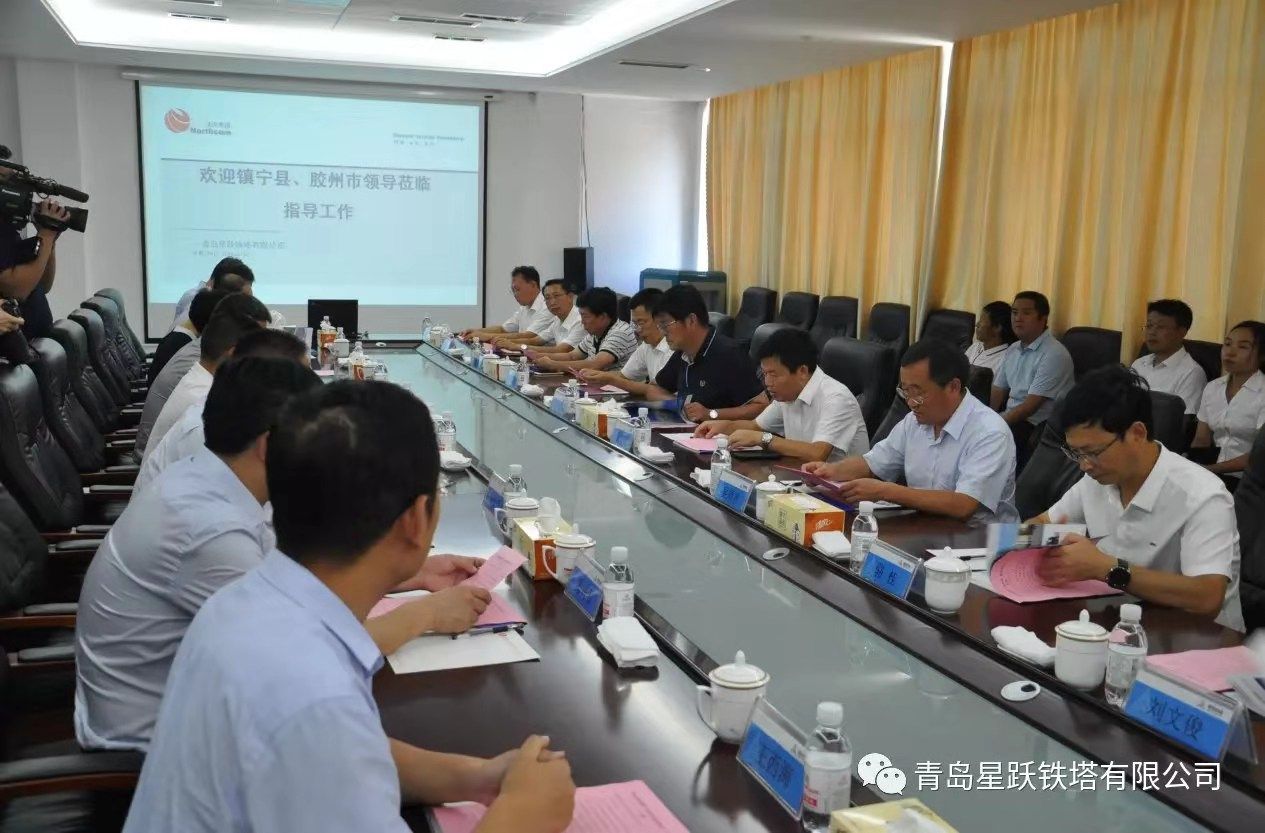 2019年8月22日上午,膠州市、鎮寧縣黨政代表團,到青島星躍鐵塔有限公司進行“東西部-就業幫扶”專項工作調研。